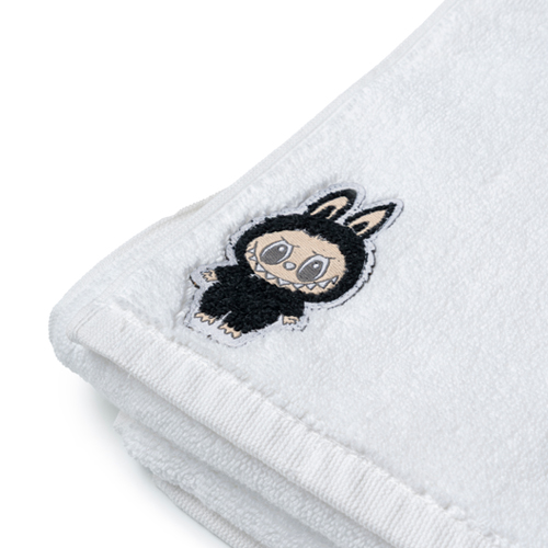 - Labubu logolu yumuşak dokulu pamuk saç havlusu.