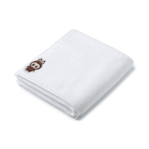 - Labubu logolu yumuşak dokulu pamuk bornoz ve saç havlusu.